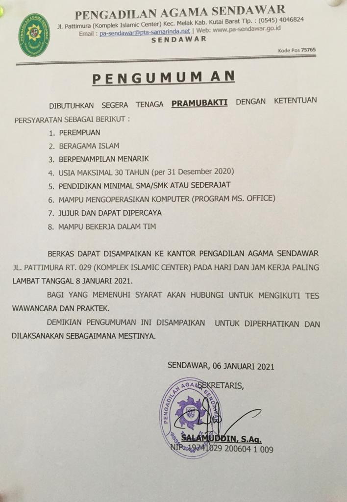 Surat Keputusan PA Sendawar